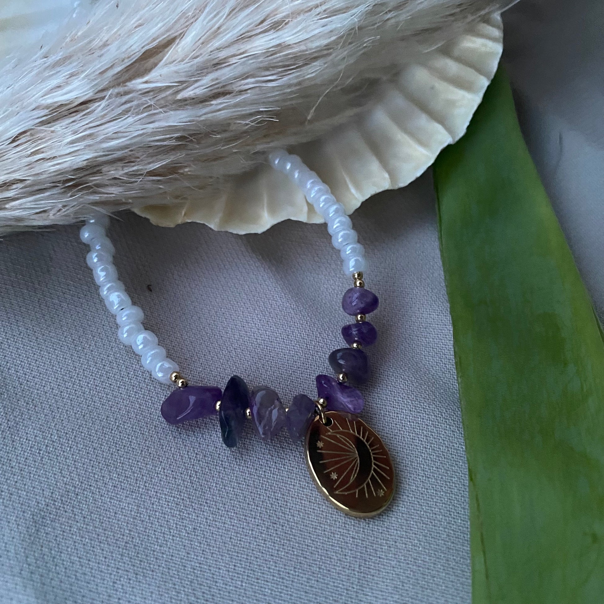 - Collier en acier inoxydable et en pierre d’améthyste